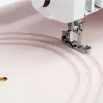 The extension table provides 12” (30cm) of additional level workspace. This table also features a series of evenly spaced pin holes to accommodate the included pivot pin for circular stitching.