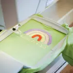 Embroider difficult-to-hoop projects without opening a seam. Simply slip part of your project around the free-arm when attaching the optional free-arm hoop.